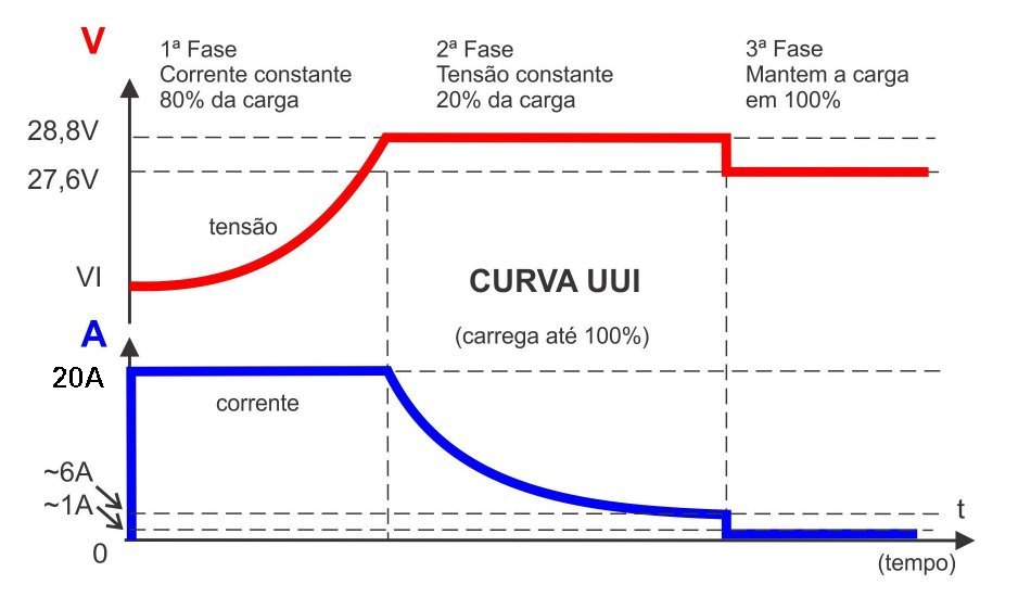 até atingir a fase de flutuação (carga de alguns miliamperes) que