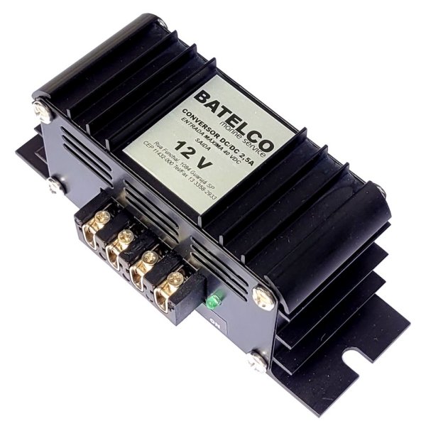 Conversores de tensão DC/DC de 24 para 12 volts 2,5 A .Ouras voltagens de saída sob encomenda. Produto com acabamento anodizado em prêto, especialmente desenvolvido para uso geral e em embarcações.
