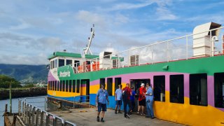 Reportagem da TV Tribuna de Santos da Balsa travessias Santos-Guarujá FB20 a primeira a receber o sistema eletrônico de leme.